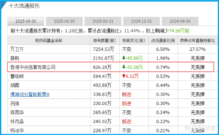 资金流向和行为提供了侧面印证。一方面,香港中央结算有限公司(北向资金) 位列前十大流通股东。